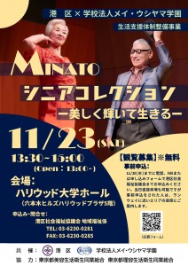 港区社会福祉協議会 Minatoシニアコレクションー美しく輝いて生きるー 11/23(土)会場 ハリウッド大学ホール 観覧募集案内 事前申込制です!