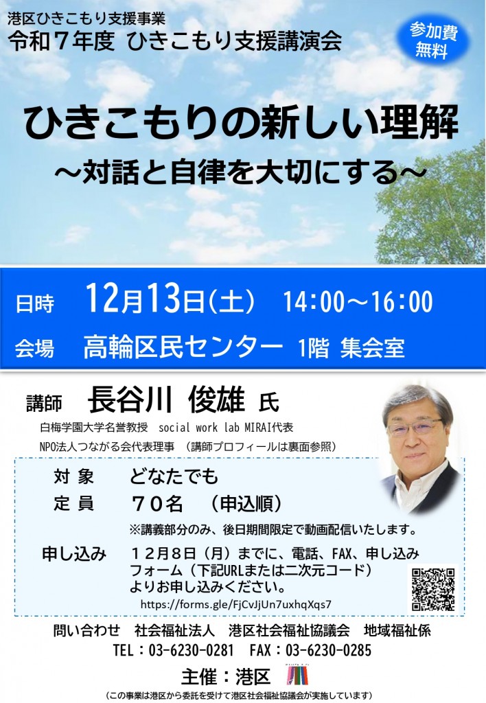 ひきこもり支援講演会 12月13日午後、ひきこもり支援講演会を開催します。どなたでも参加できます。