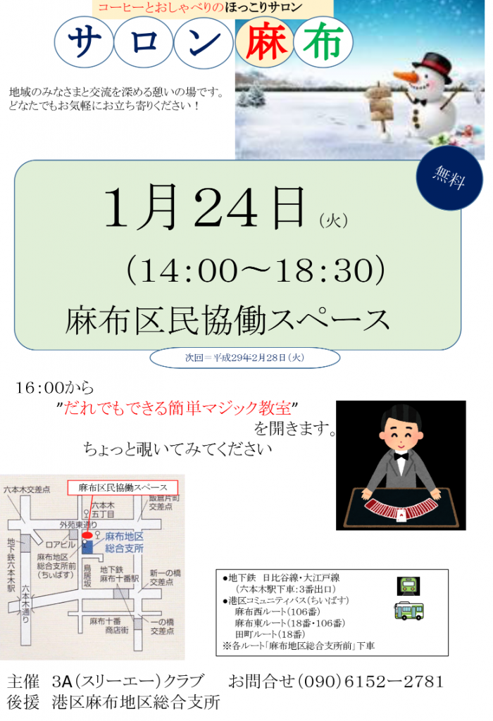 サロン麻布へお気軽にお立ち寄りください! 1月24日(火)
