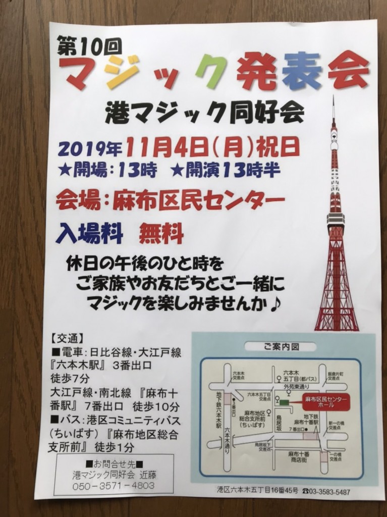 マジックで休日の午後のひと時を! 11月4日(月)麻布区民センターへ