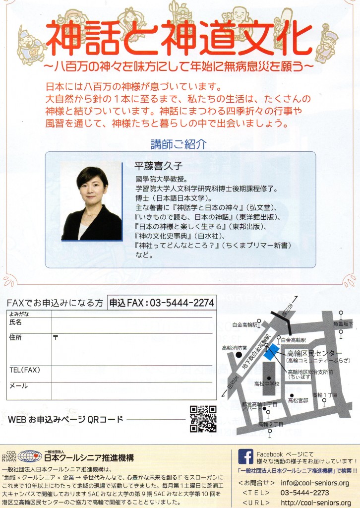八百万の神々を味方にして年始に無病息災を願いませんか!1月11日(土)13:30~高輪区民センター1F集会室