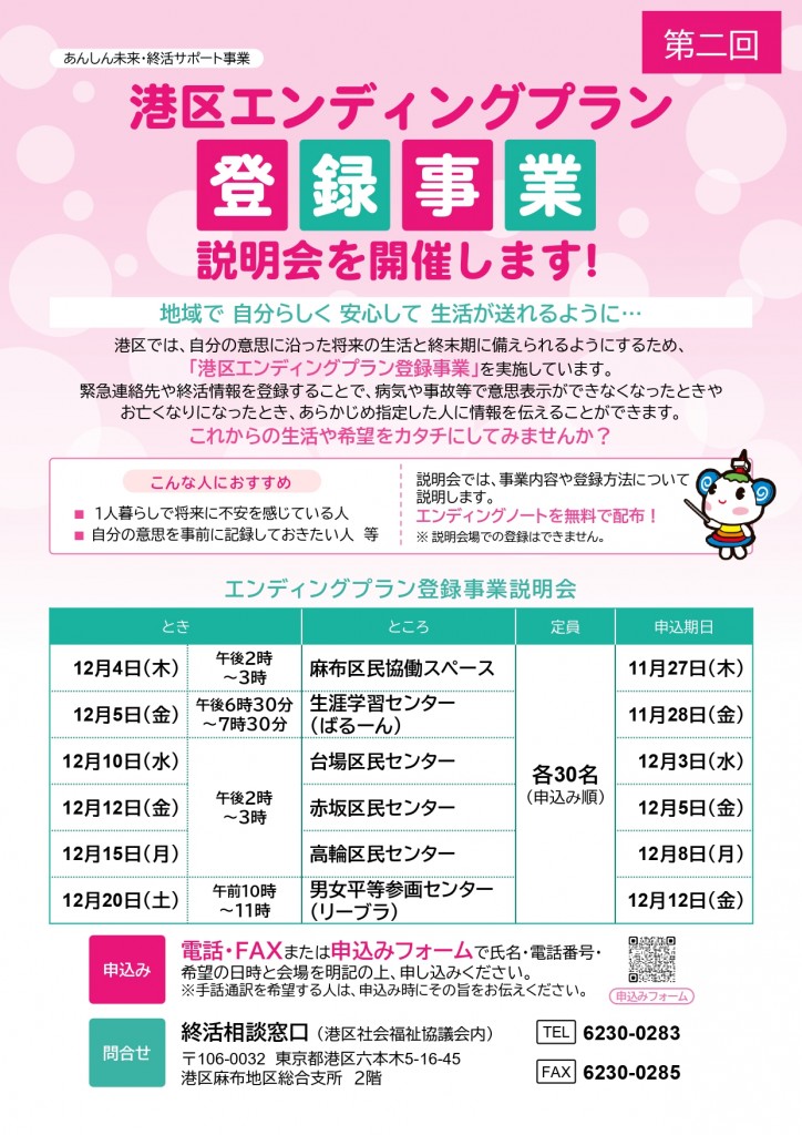 あんしん未来・終活サポート事業港区エンディングプラン登録事前説明会